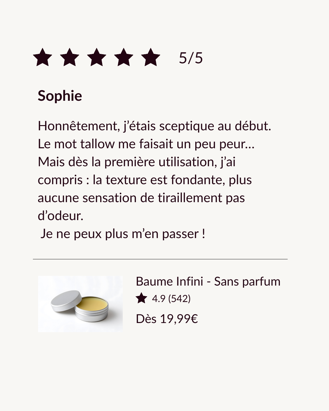 Contrairement à une crème classique, un baume tallow ne contient aucune phase aqueuse (donc aucun conservateur).